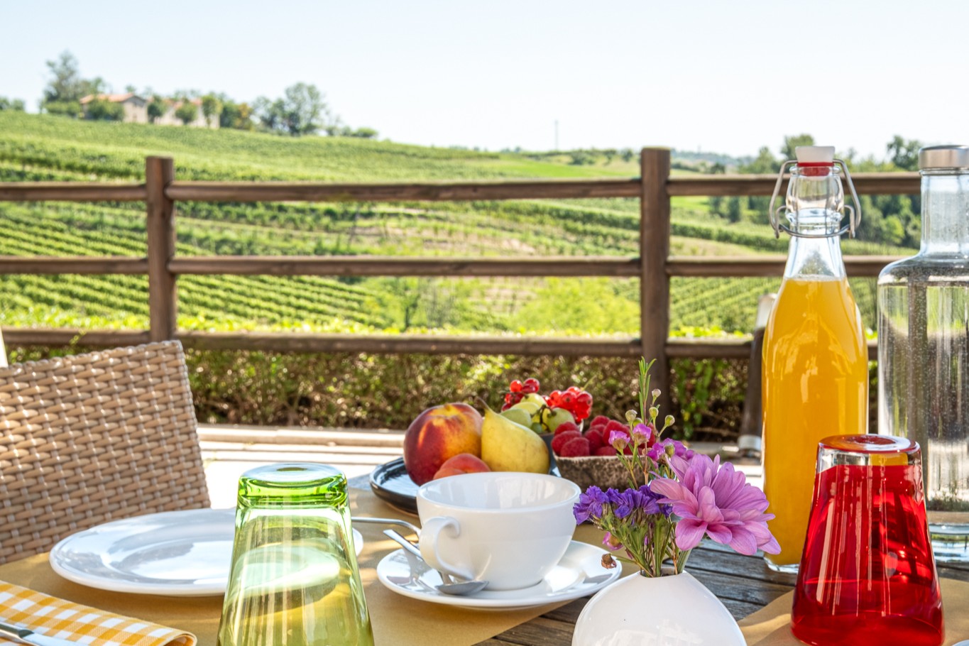 Offre 5 camere dotate di tutti i comfort e una terrazza mozzafiato sui vigneti.