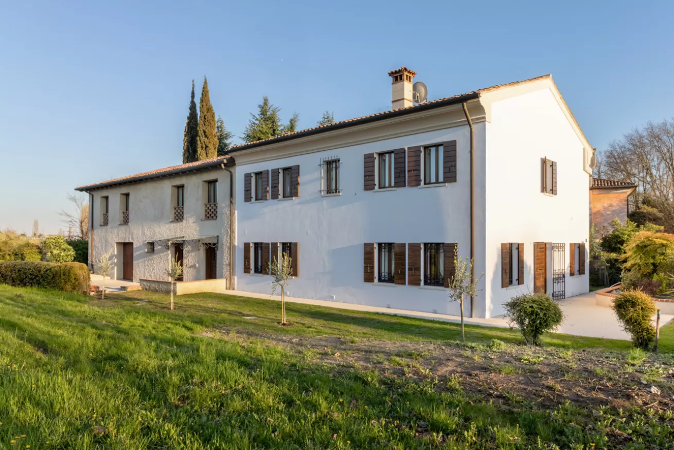 The external area with porticos and garden are the perfect place to relax with a book or a good glass of Prosecco, admiring the sunset over the hills.