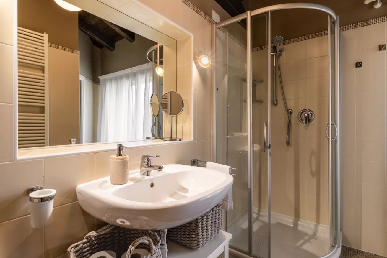 In the right part of the building there are 3 additional private rooms with en-suite bathrooms, which can also be booked individually: ORTENSIA and FIORDALISO for 2 guests, and SUITE ROSA for 4 guests.